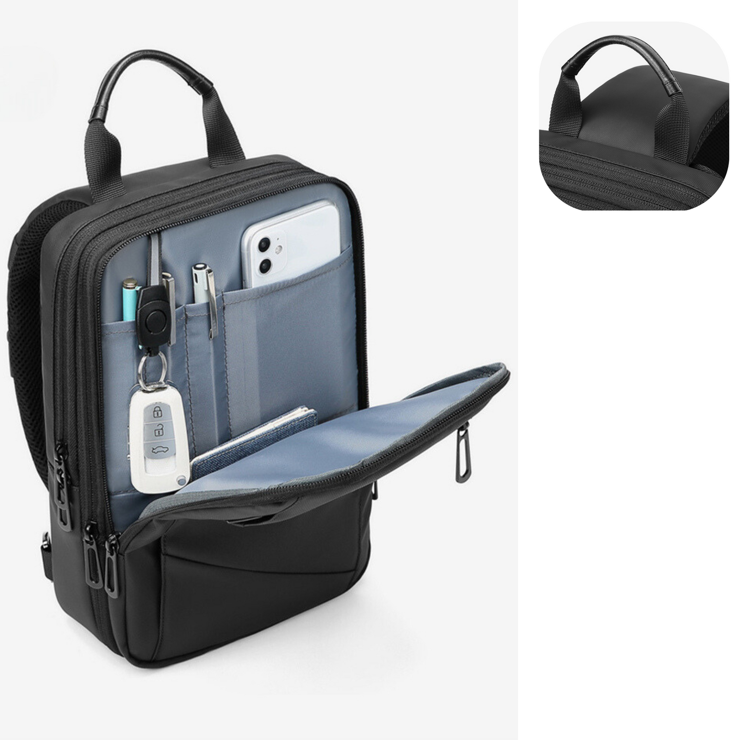 Safeguard your passports, cards, important documents, phones, keys... thanks to its secret compartment.