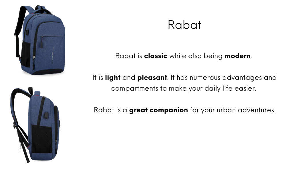 Stylish, sturdy, and smart, the Rabat backpack has been specially designed to meet the demands of active people.
