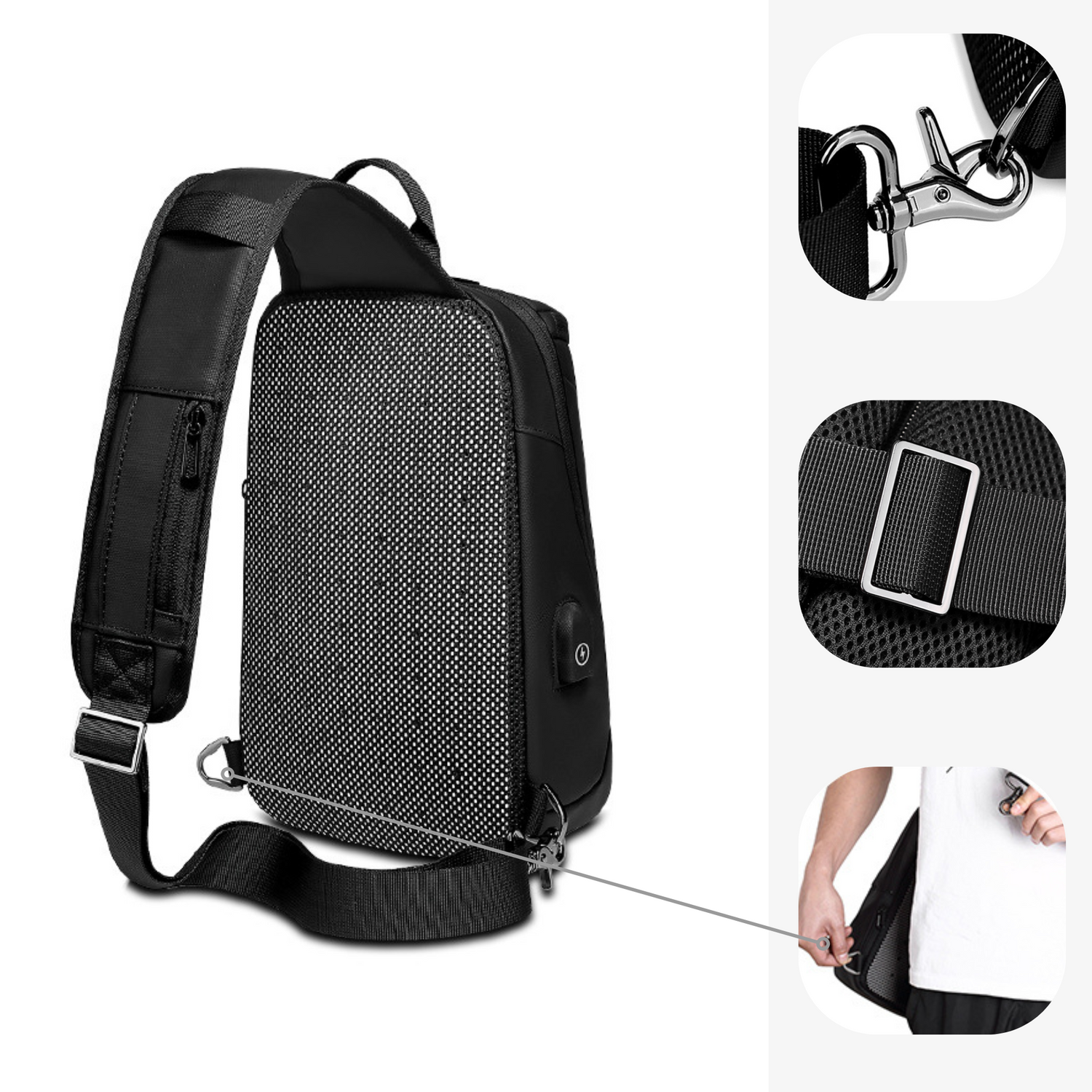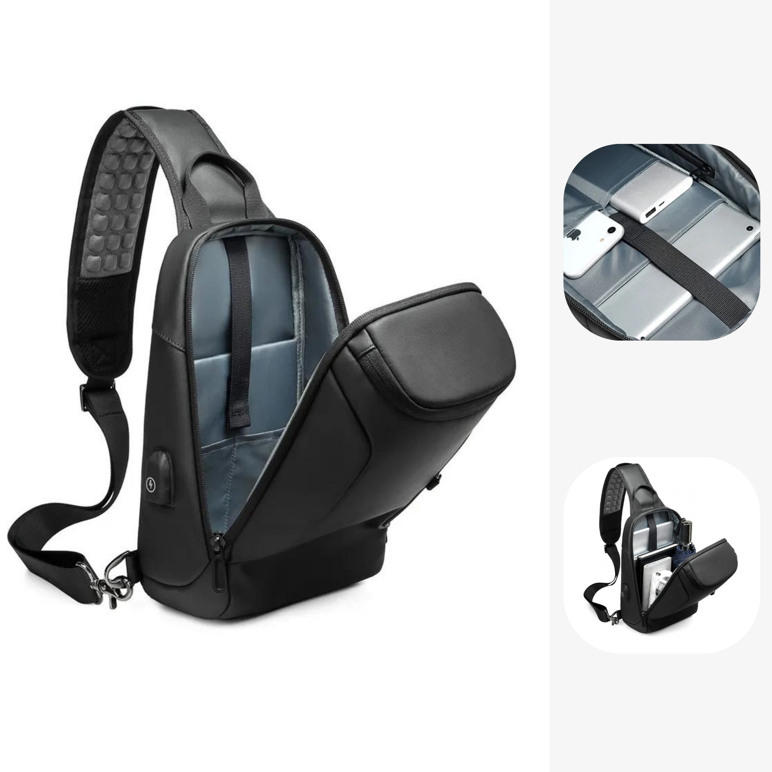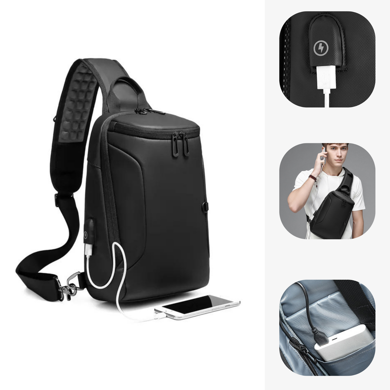 No more dead batteries thanks to its built-in USB port and its compartment specifically designed for your external battery (device not included).