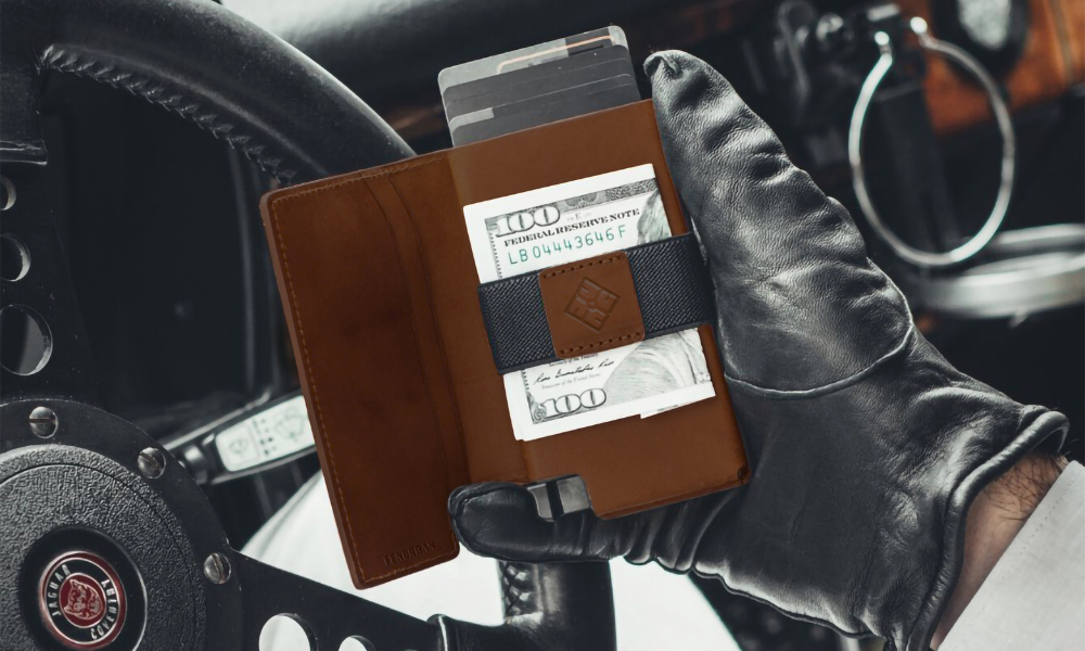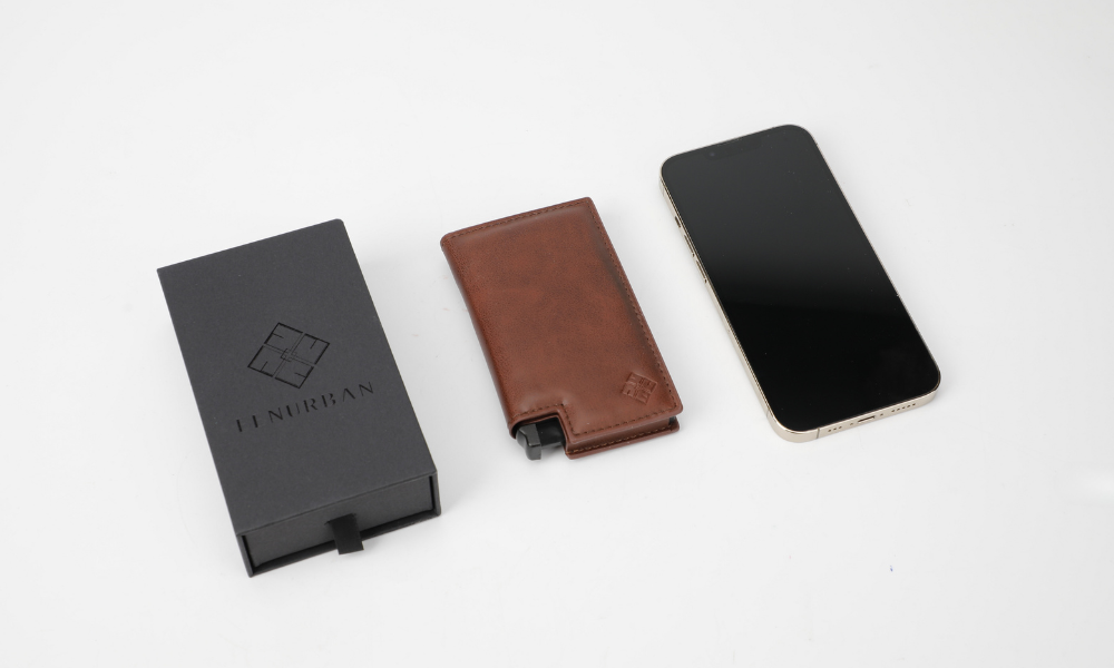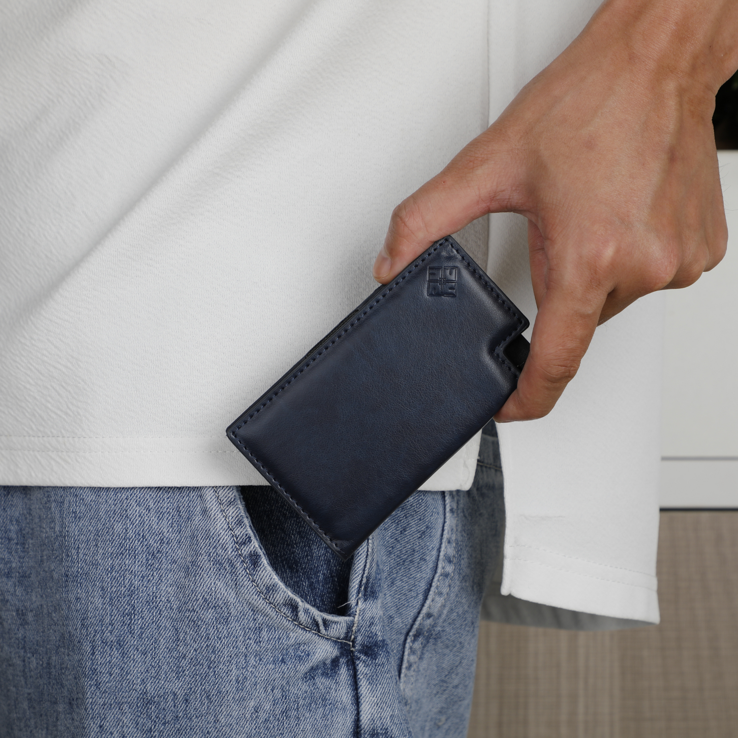 The WALLACE wallet holder effortlessly slides into any trousers pocket, jacket, or bag without adding excessive bulk.
