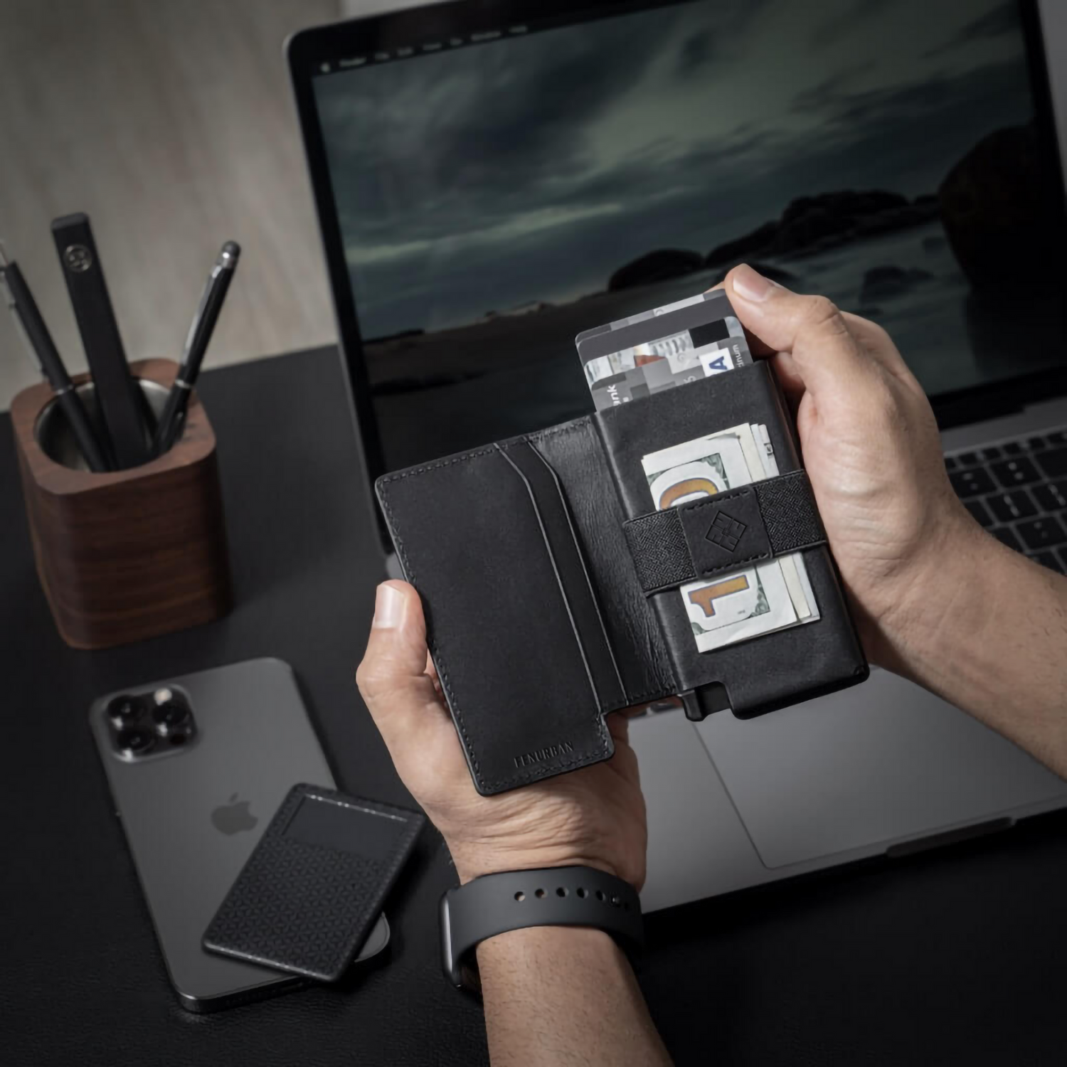 WALLACE, the revolutionary wallet with a patented card ejection system, offers a smart solution for organizing and easily accessing your credit cards.